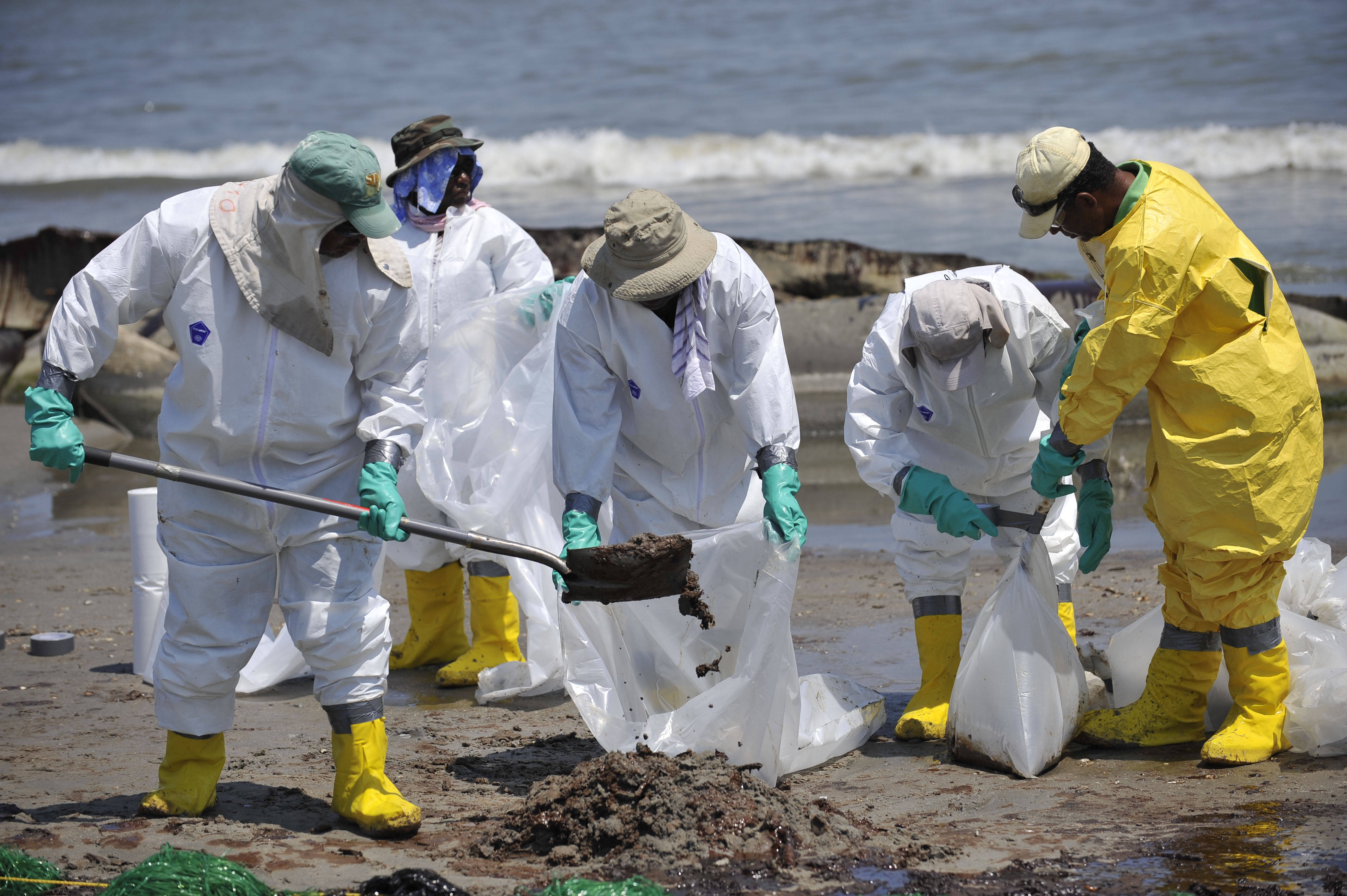 照片拍摄于2010年5月24日,在美国路易斯安那州南部的佛琼港,清洁工人正在清理海滩上的油污。新华社记者张军摄据美联社报道,加州是全美限制海上油气开采极为严格的州。1969年,加州圣巴巴拉海岸附近的联合石油钻井平台发生井喷,导致近1590万升原油泄漏。这场灾难成为推动加州近海钻探禁令立法的重要案例。
