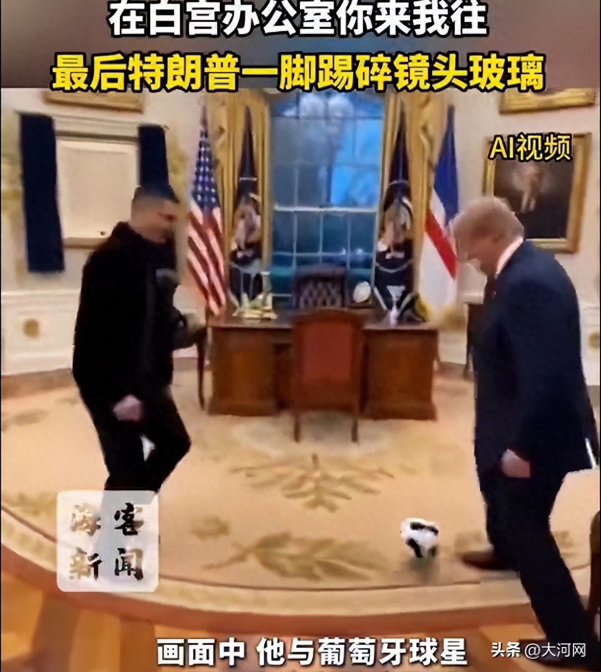据海客新闻:据英国《独立报》报道,20日凌晨,美国总统特朗普在社交平台上,发布一段AI制作的视频。画面中,他与葡萄牙球星克·罗纳尔多(C罗)在白宫办公室踢球,两人笑着你来我往,最后特朗普一脚踢碎镜头玻璃。近日,C罗随同沙特王储访问美国配资网站排名第一,并受到特朗普的宴请。11月20日,据中新体育消息,北京时间19日晚,葡萄牙球星C罗在社交媒体晒出了自己与美国总统特朗普交谈的视频片段,视频中,C罗被特朗普逗得合不拢嘴。此后,他也晒出了自己和特朗普的合影,“感谢总统先生的邀请,以及您和第一夫人对我及未婚妻乔治娜的热情欢迎。”据此前报道,C罗获邀前往白宫,出席了白宫为沙特王储举行的一场晚宴,被特朗普点名夸奖。“我儿子是C罗的超级粉丝,巴伦见到了他,我觉得巴伦现在对他父亲更加尊敬了”,特朗普说完引发台下一阵笑声。与会者包括当天访问白宫的沙特王储兼首相穆罕默德及政治、商业与体育界名流。特朗普还表达了对C罗的感谢,称“我光是介绍你就觉得特别荣幸”。另据体坛周报消息,宴会来宾包括英伟达CEO黄仁勋、横跨政商的“大网红”埃隆·马斯克。