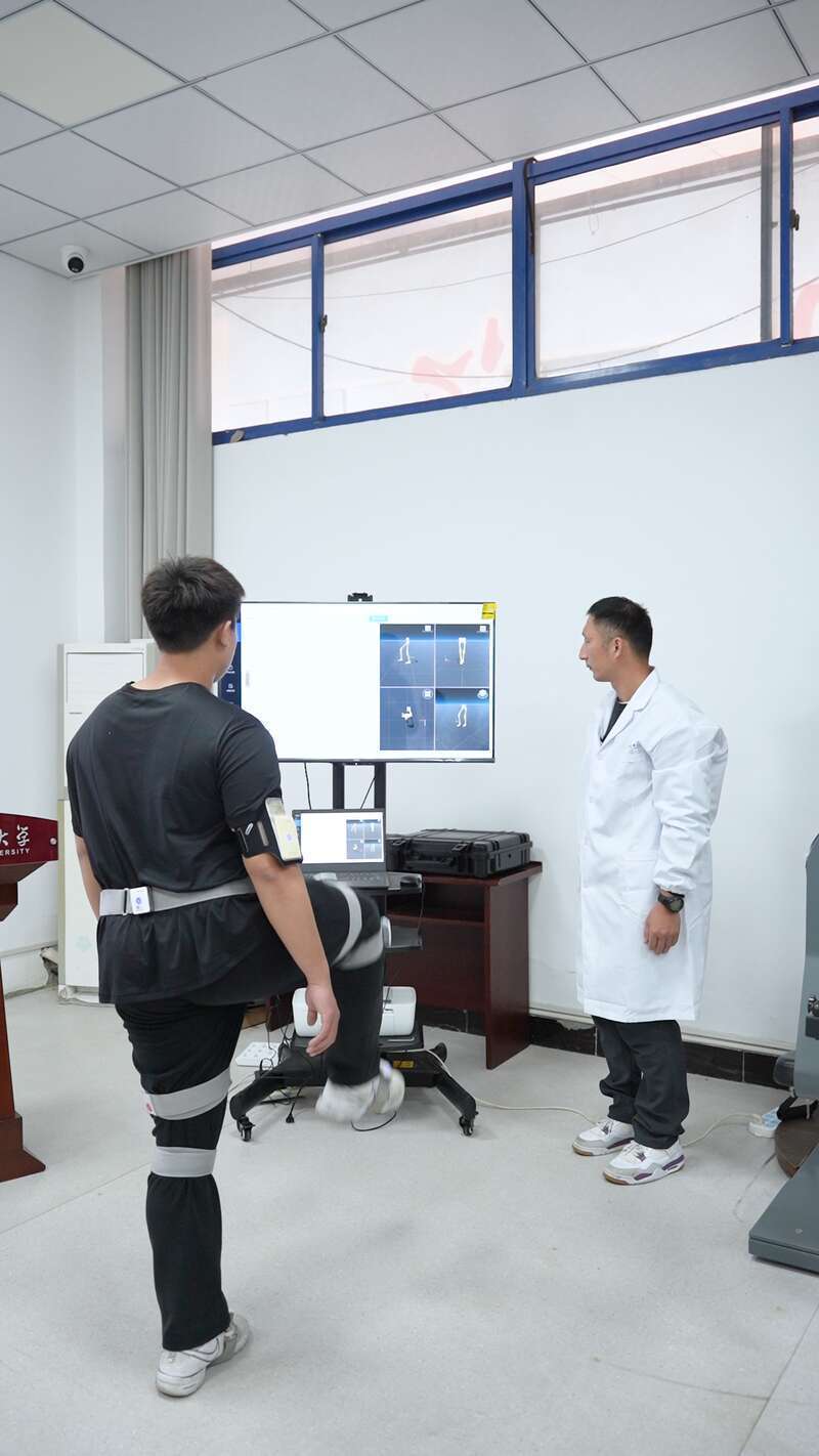而学生路千钧虽然身体还未出现不适症状,但体态评估后发现站姿有髋关节内旋的问题,时间久了会导致运动功能受限及下肢力线异常等。于是,他在老师的指导下进行康复训练并重新学起了“走路”——“保持身体中立位,目视前方,手臂自然摆动,脚跟先着地并滚动至脚尖。对,这样就能纠正髋关节内旋问题了。”