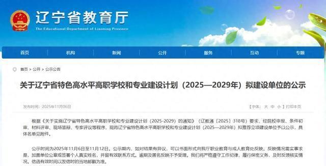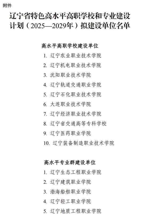 11月6日,辽宁省教育厅发布《关于辽宁省特色高水平高职学校和专业建设计划(2025—2029年)拟建设单位的公示》。根据《关于实施辽宁省特色高水平高职学校和专业建设计划(2025-2029)的通知》(辽教通〔2025〕318号)要求正规配资十大排名,经院校申报、条件初审、材料评审、现场答辩、专家评议等程序,现将辽宁省特色高水平高职学校和专业建设计划(2025—2029年)拟推荐立项建设单位予以公示。