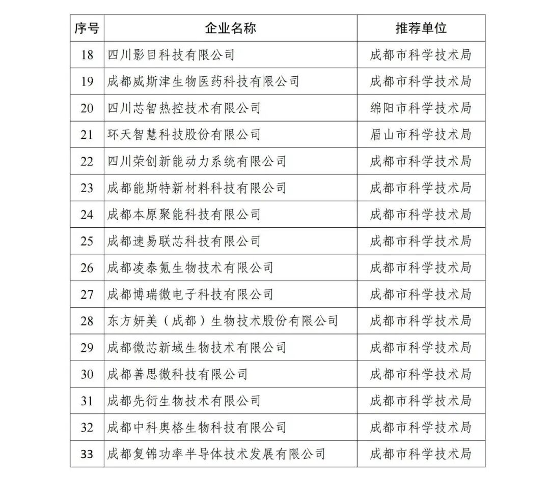 从名单来看,33家企业中,有28家来自成都,3家来自绵阳,1家来自宜宾,1家来自眉山。从行业分布看,集中分布在集成电路、新型显示与生物医药等领域。公示时间为2025年11月18日至2025年11月24日。