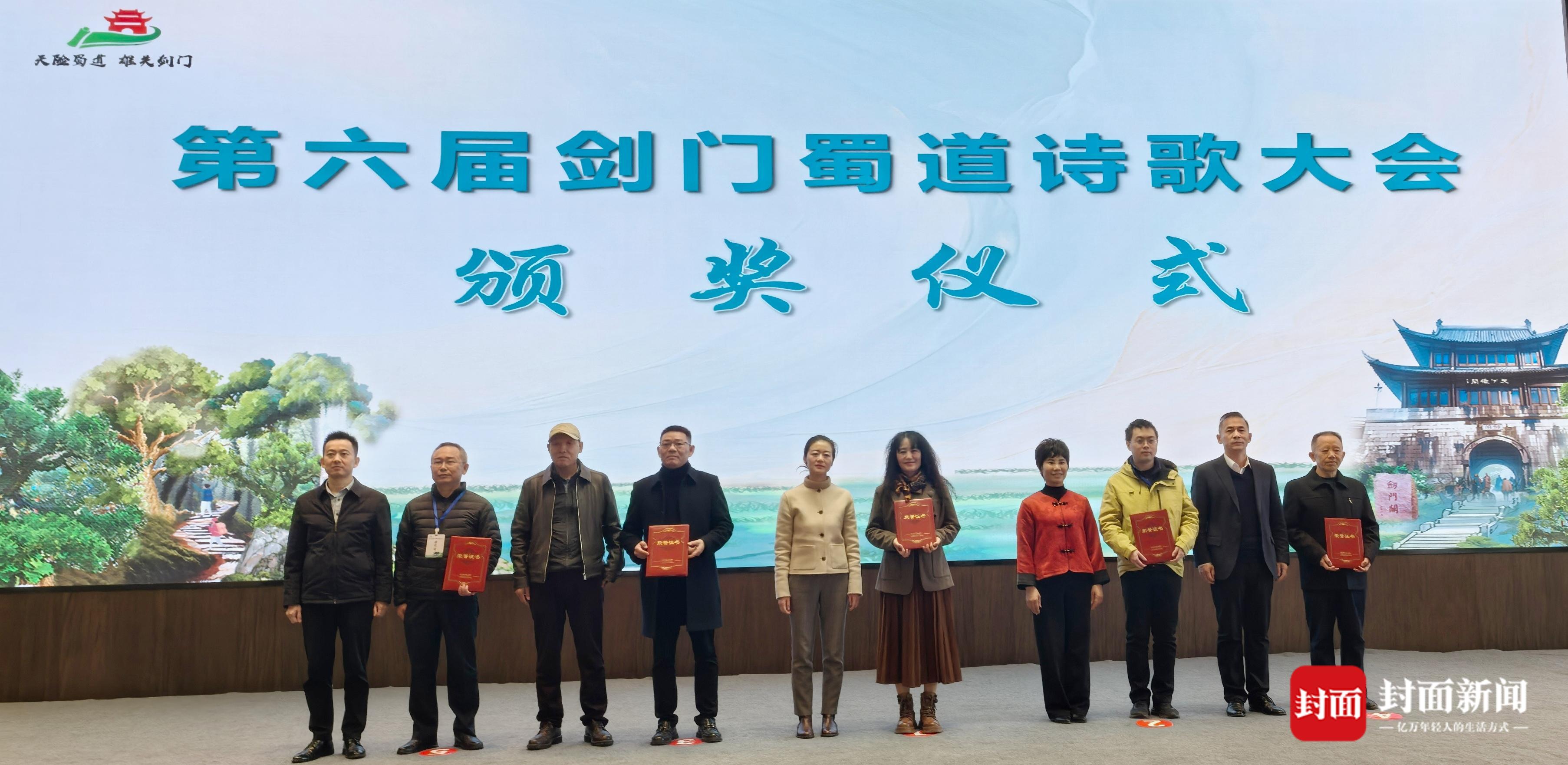 11月19日下午,第六届剑门蜀道诗歌大会在四川广元剑阁县举行。来自全国各地的作家、诗人及文学爱好者齐聚雄关之下,以诗为媒、谈诗论道,共同见证11件获奖作品揭晓颁奖,让千年蜀道在诗意中焕发新生。