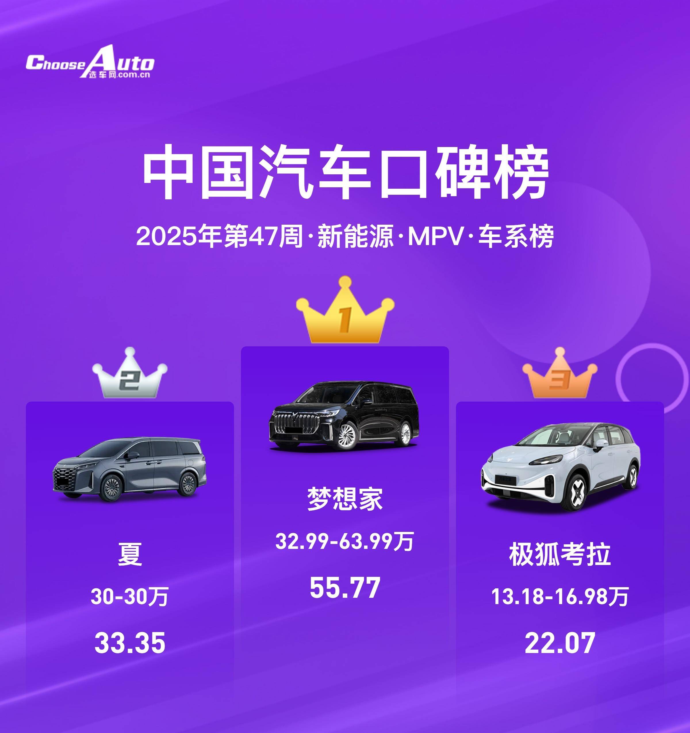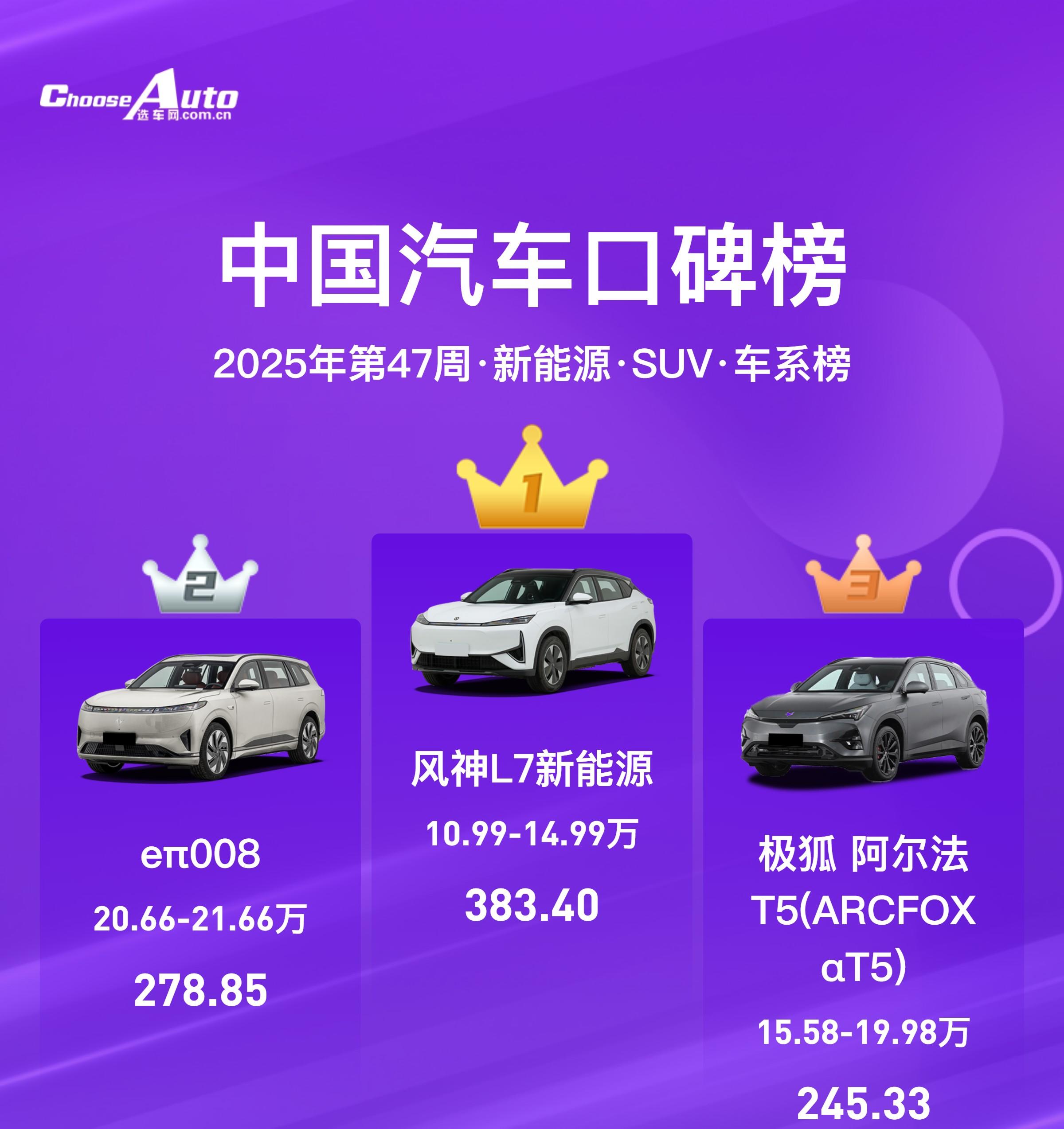 随着新能源汽车市场的不断发展,消费者对于新能源车型的关注度持续上升。近日,选车网发布了2025年第47周的中国汽车口碑榜,涵盖了新能源SUV、MPV和轿车三个类别。这份榜单不仅展示了当前市场上最受欢迎的新能源车型,也为消费者提供了宝贵的购车参考。